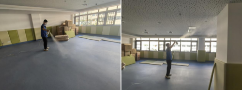 施工第1道:完全分解空氣中游離態(tài)污染物,采用方法:全空間霧化技術(shù)(空調(diào)新風(fēng)窗戶需關(guān)閉)。