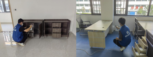 施工第3道工序:對細(xì)小家具、抽屜、床墊、木制鑲嵌柜子進行除味工作,確保異味明顯降低,無刺激異味(人員可以正常進出)。