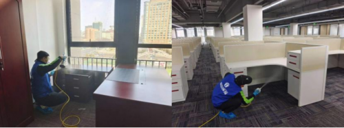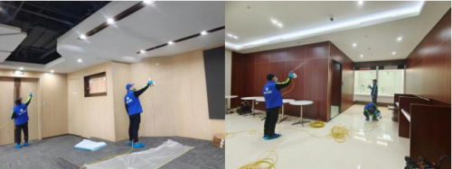 施工第1道:完全分解空氣中游離態污染物,采用方法:全空間霧化技術(空調新風窗戶需關閉)。